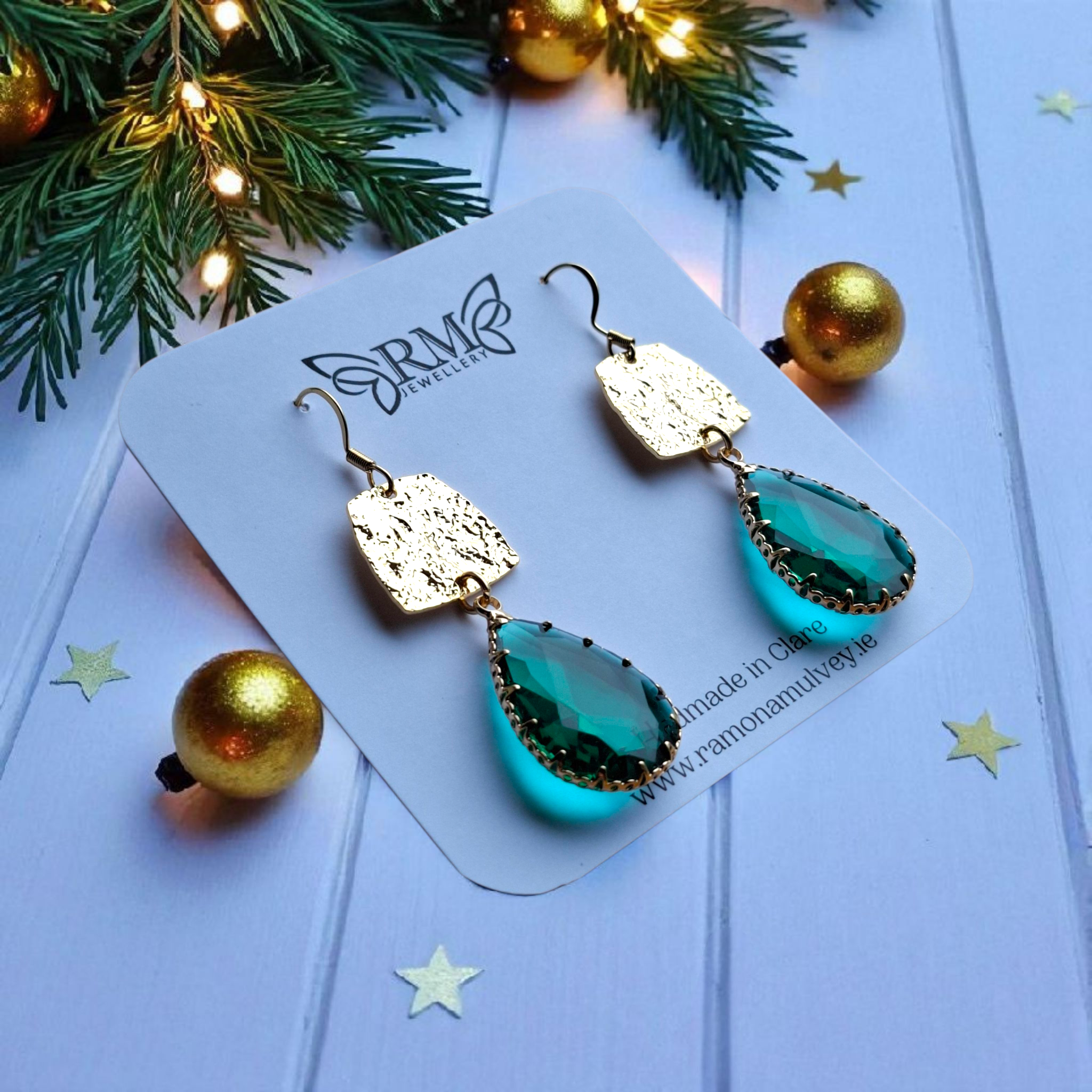Gorgeous statement crystal drop earrings with beautiful brass lead free trapezoid connector. Elegance to take you from day to night. Stainless Steel ear posts